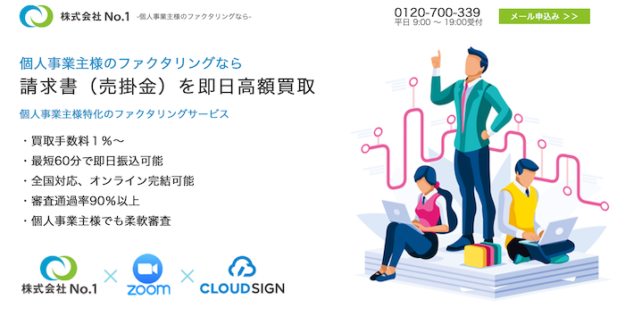 その名の通り、ファクタリング業界での実績はNo.1クラスの老舗業者です。特に建設業や運送業など、売掛金の入金サイトが長くなりがちな業種の個人事業主への理解が深いです。